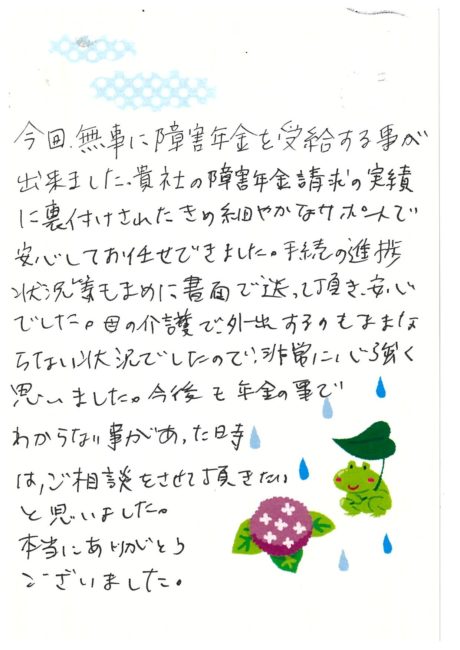 - お客様からのお手紙-6 上三川町S様の障害年金
