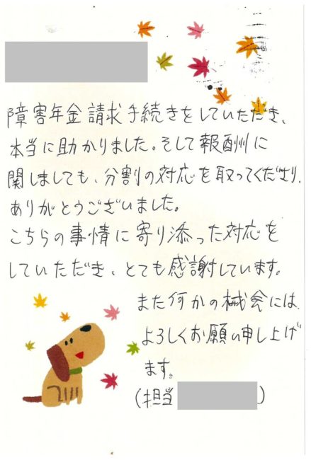 - お客様からのお手紙201 宇都宮市W様の障害年金